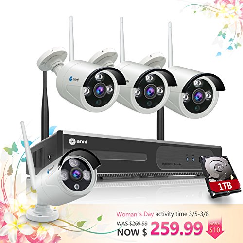 Above this is the one of the product images of the anni 4CH 1080P HD NVR Wireless Security CCTV Surveillance Systems, Wifi NVR Kit and (4) 2.0MP Megapixel Wireless Indoor Outdoor Bullet IP Cameras, P2P, 65ft Night Vision,with 1TB Hard Drive. To get other pictures, you can click on the image above.